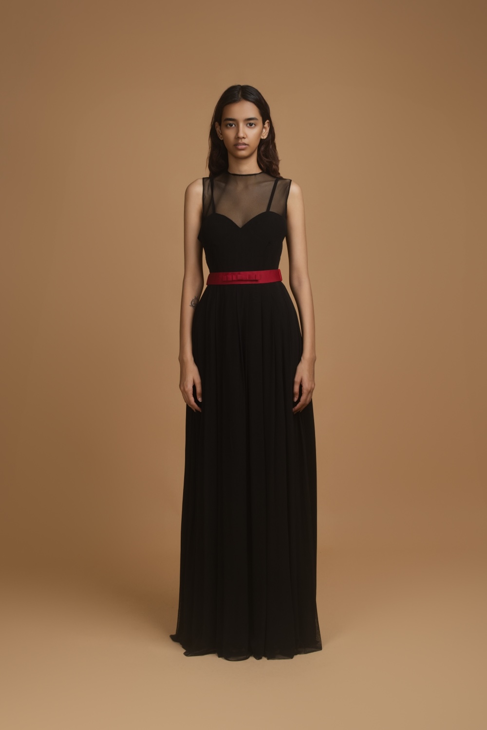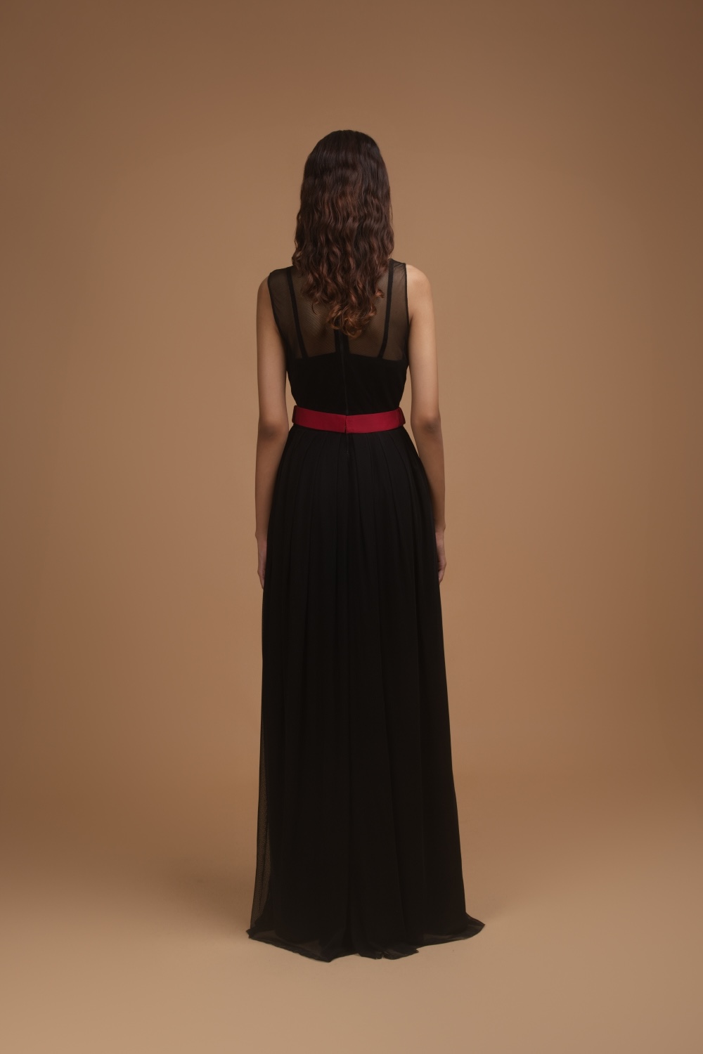 Black Mesh Gown With Hand-Made Bow Belt
