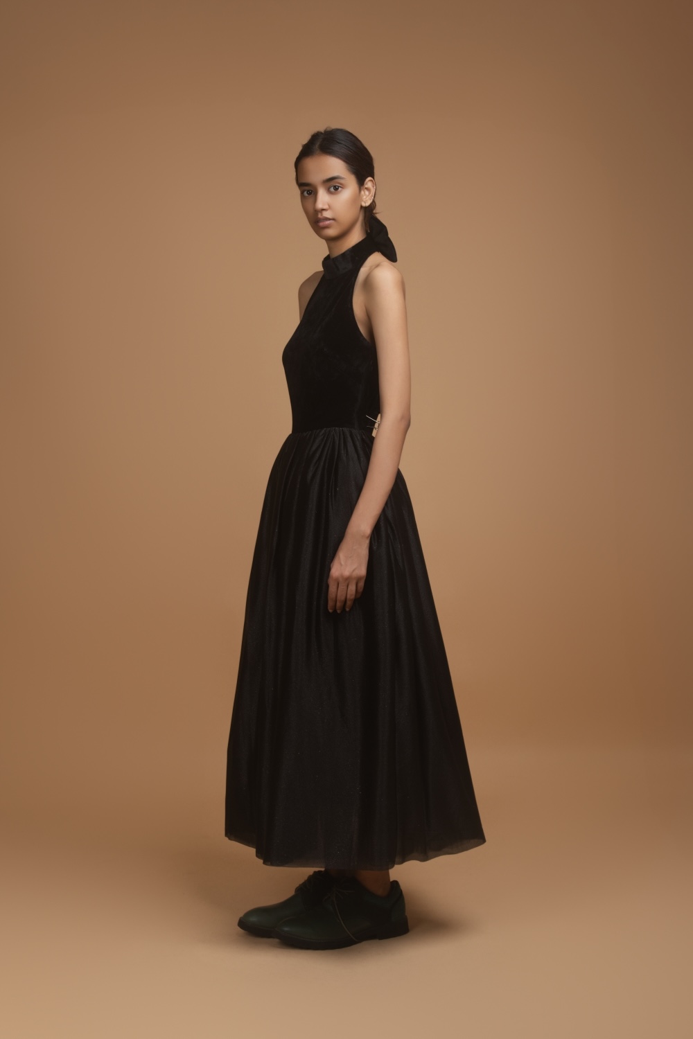 Black Back Bow Halter Dress
